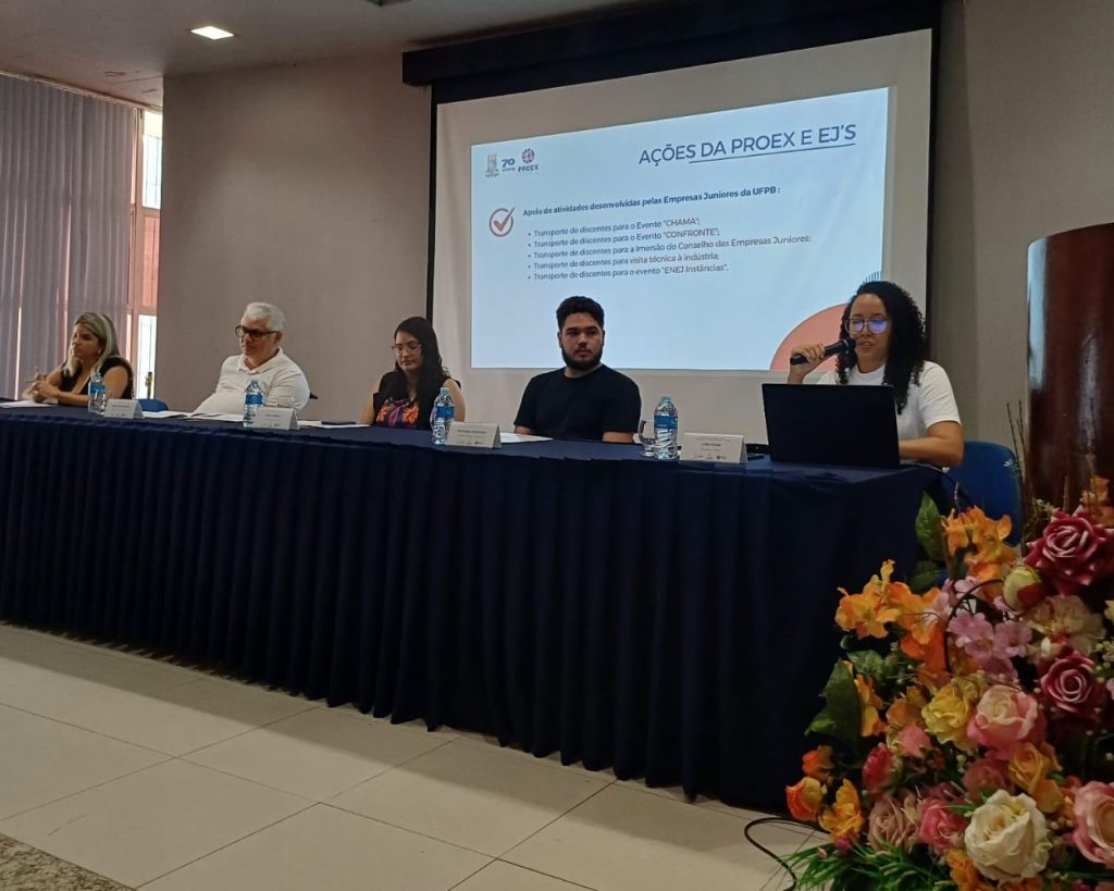 A servidora técnico-administrativa da Proex, Líbia Ferreira, apresentou os dados da unidade no apoio institucional junto às empresas juniores em 2025. As ações contemplam desde apoio financeiro para participação em eventos até contratação de serviço de contabilidade. “É importante ressaltar mais uma vez a importância da atualização dos dados cadastrais das EJs junto a UFPB para garantir orçamento para esse fim”, reiterou Líbia.